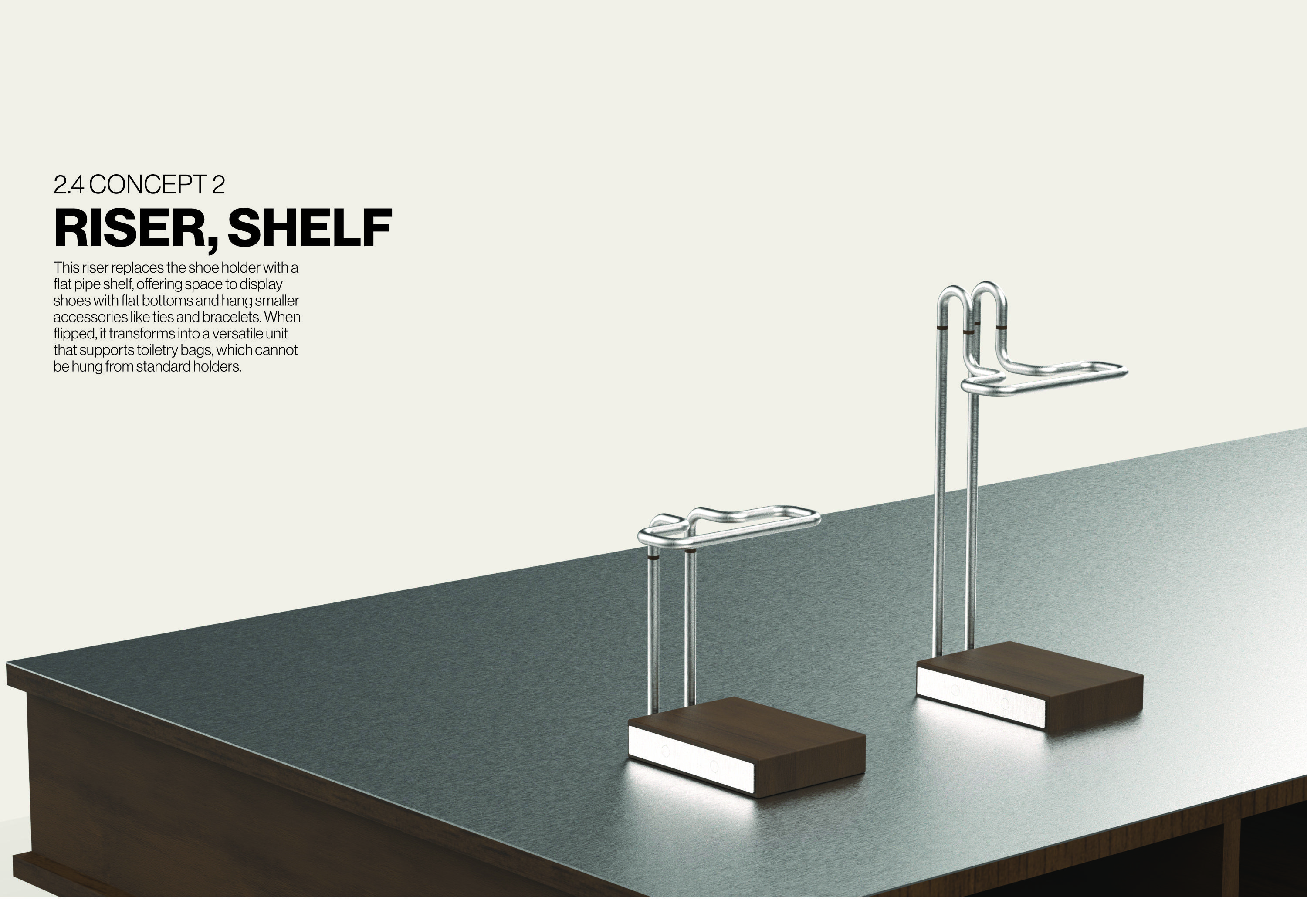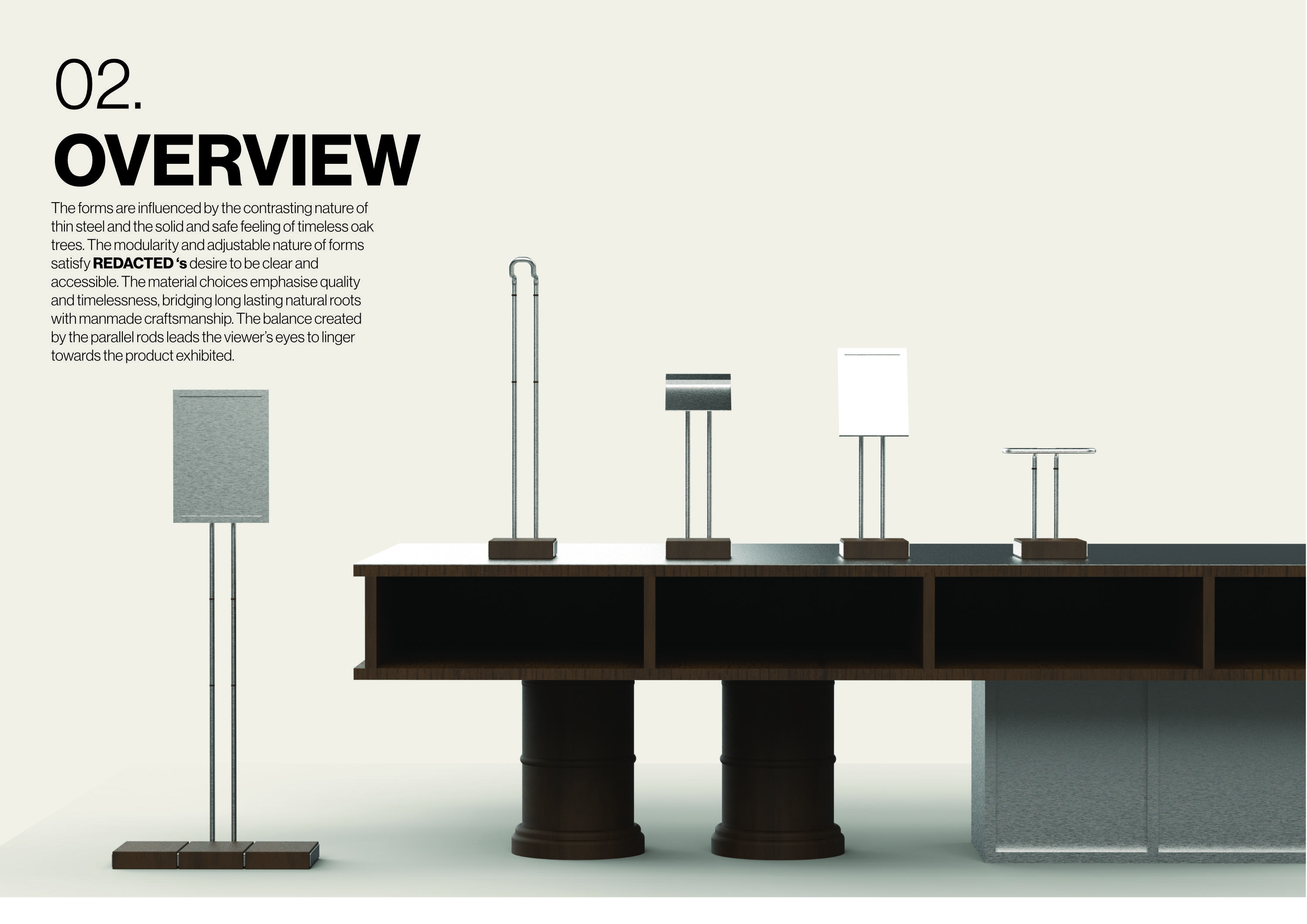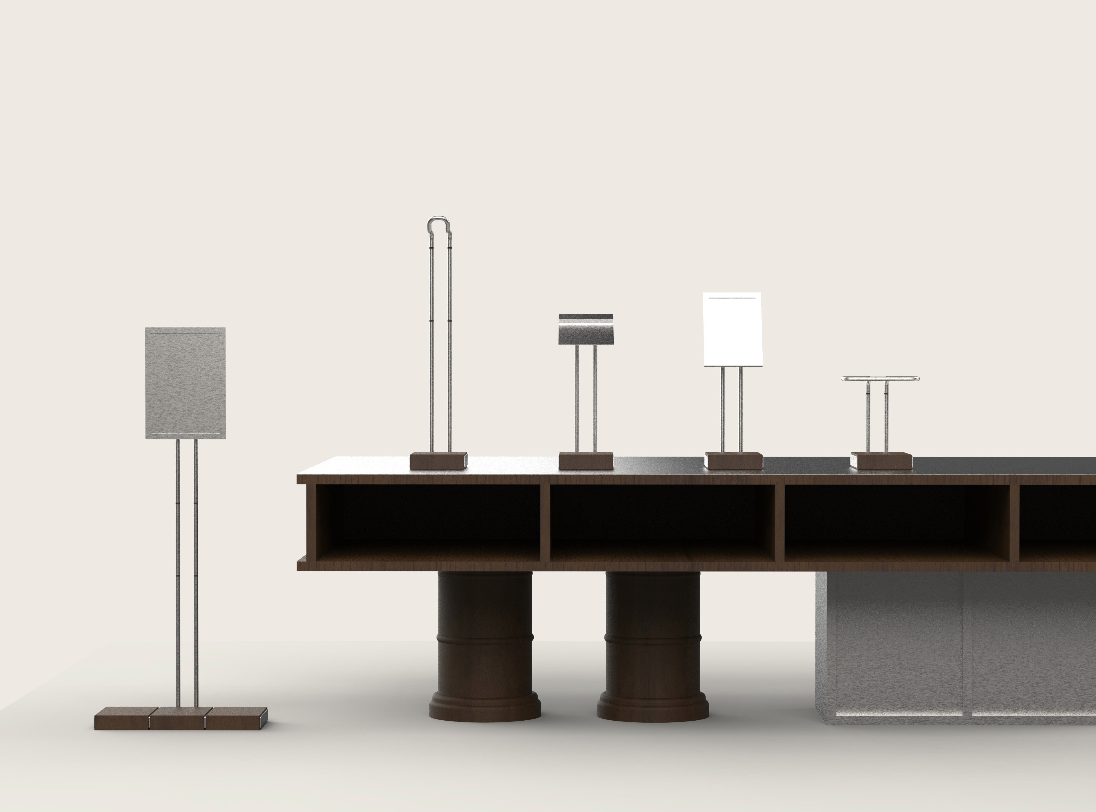 The provided pipe segments allow the products to be adjusted to the desired height while still following the structured layout of REDACTED’s stores. The base pipes are available in 20cm and 40cm variants. Each additional height adjustment is made with a 20cm pipe segment.